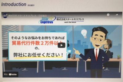 YouTube アニメーション動画 会社紹介のご案内新ビジネス ~ビジネスマッチングサービスの案内~株式会社スターエキスプレスの新たなビジネスサービスを沢山の人に知ってもらいたく YouTube にアニメーション動画を掲載をいたしました。お客様の自社の強みや技術を生かしてコロナ禍でも貿易を通じてたサービス展開を...
